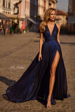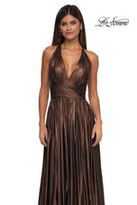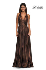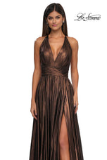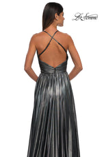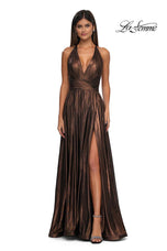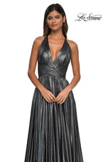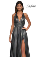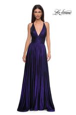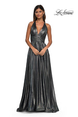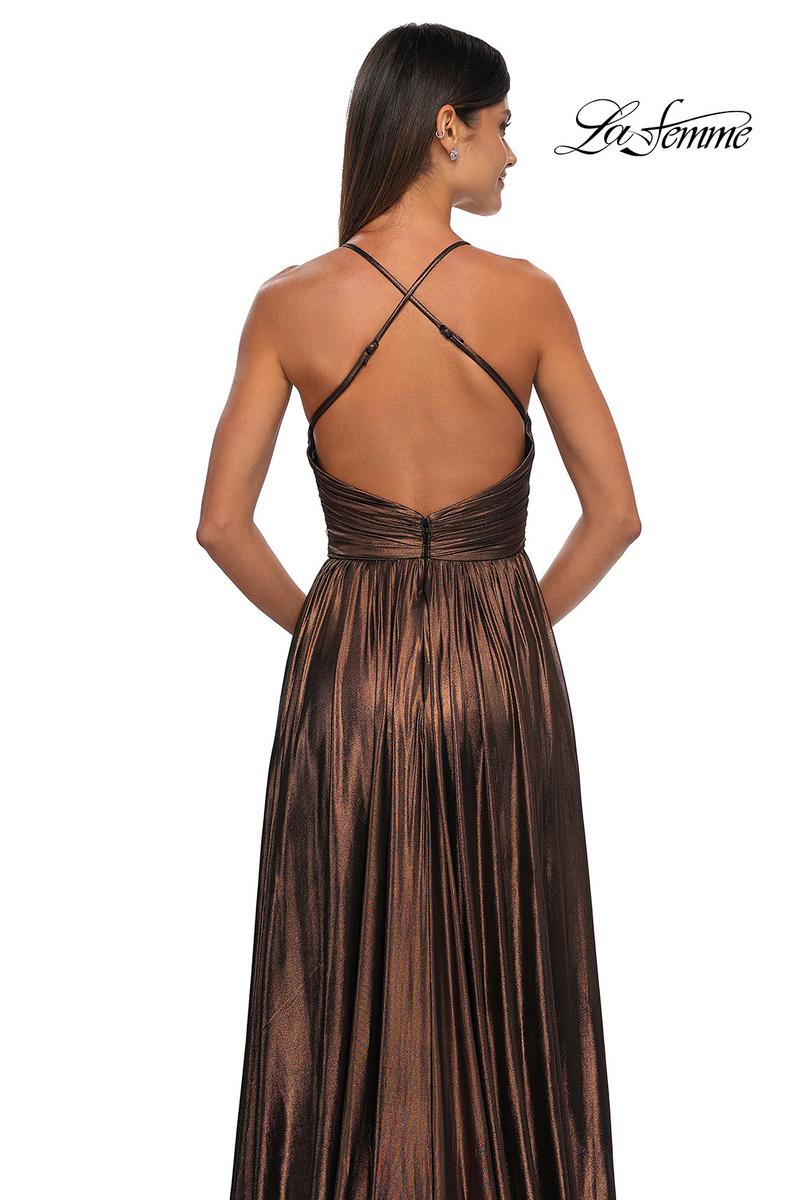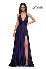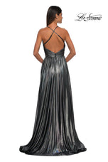 The fabric in this La Femme Prom style is Metallic Net Jersey
