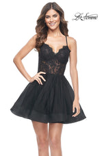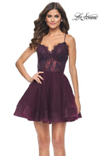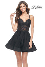 Embrace timeless elegance with the La Femme Style 31769 A-Line Homecoming Dress, a true masterpiece for Homecoming 2023. The corset bodice and illusion lace detailing create a captivating look that seamlessly combines allure with sophistication. The sweetheart neckline adds a touch of romance, while the A-line silhouette flatters every figure. The lace-up back not only provides a perfect fit but also adds a charming detail to the dress. From the moment you slip into this La Femme creation, you'll feel confident and radiant, ready to make a statement at your homecoming event. Let your style shine in a dress that embodies grace, modernity, and sheer beauty, setting the tone for an unforgettable evening.