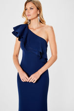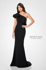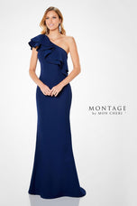 Montage style 221975 is nothing short of beautiful. This one shoulder gown has an eye catching layered ruffle that is accented with shimmering crystals. This gown has a fit and flare silhouette that is sure to accentuate all of your curves. If you are looking for a mother of the occasion dress or a formal gown then shop right here at Terry Costa.