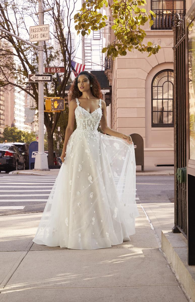 This Morilee Bridal Spring 2023 Wedding Dress is Josie, a gorgeous a-line gown fit for your fabulous outdoor wedding or destination ceremony. Featuring a sweetheart neckline with delicate straps, 3D lace appliqus, and a corset bodice, we're loving her modern yet classic vibes. The glitter skirt is fun and flirty and we're absolutely obsessed. Finished with a scoop back. Available in three lengths, making alterations a breeze for our petite and tall brides. Please call our Dallas, Texas location to check in-store availability, pricing, and current ship dates.