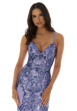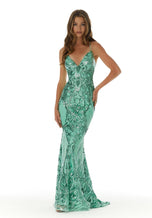 Make them look twice in Mori Lee style 43032. This sultry column gown has a stunningly sequined pattern throughout. Another plus for this gown is the wide V-shaped neckline and the beautiful corset back. If you are looking for an evening gown, prom dress, or any other special occasion gown then this gown is perfect for you.