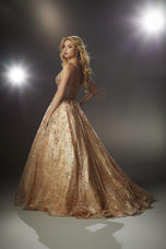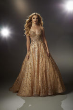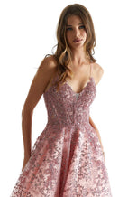 OMG *Adds to Cart* This Morilee Prom ballgown is the one for you! 48017, is created with dazzling beaded lace appliques on shimmering pattern glitter net that will have you shining bright from all angles. The sexy plunged v neckline has thin spaghetti straps that crisscross leading to an eye-catching lace-up corset back. Don't miss out on this gorgeous gown for your senior prom night and much more! Need additional details such as in-store availability, sizing, or pricing, call us at Terry Costa or visit us in store!