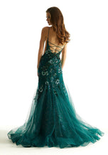 Morilee will boost your confidence in this sexy and sparkling mermaid gown from Spring 2024. 49021, displays a plunged v-neckline with dainty straps, sexy side cutouts, and lace-up back. This prom dress has allover floral-patterned sequins that add that extra spark! The gown is completed with a tulle train that will sway with every step that you take and sexy leg slit.