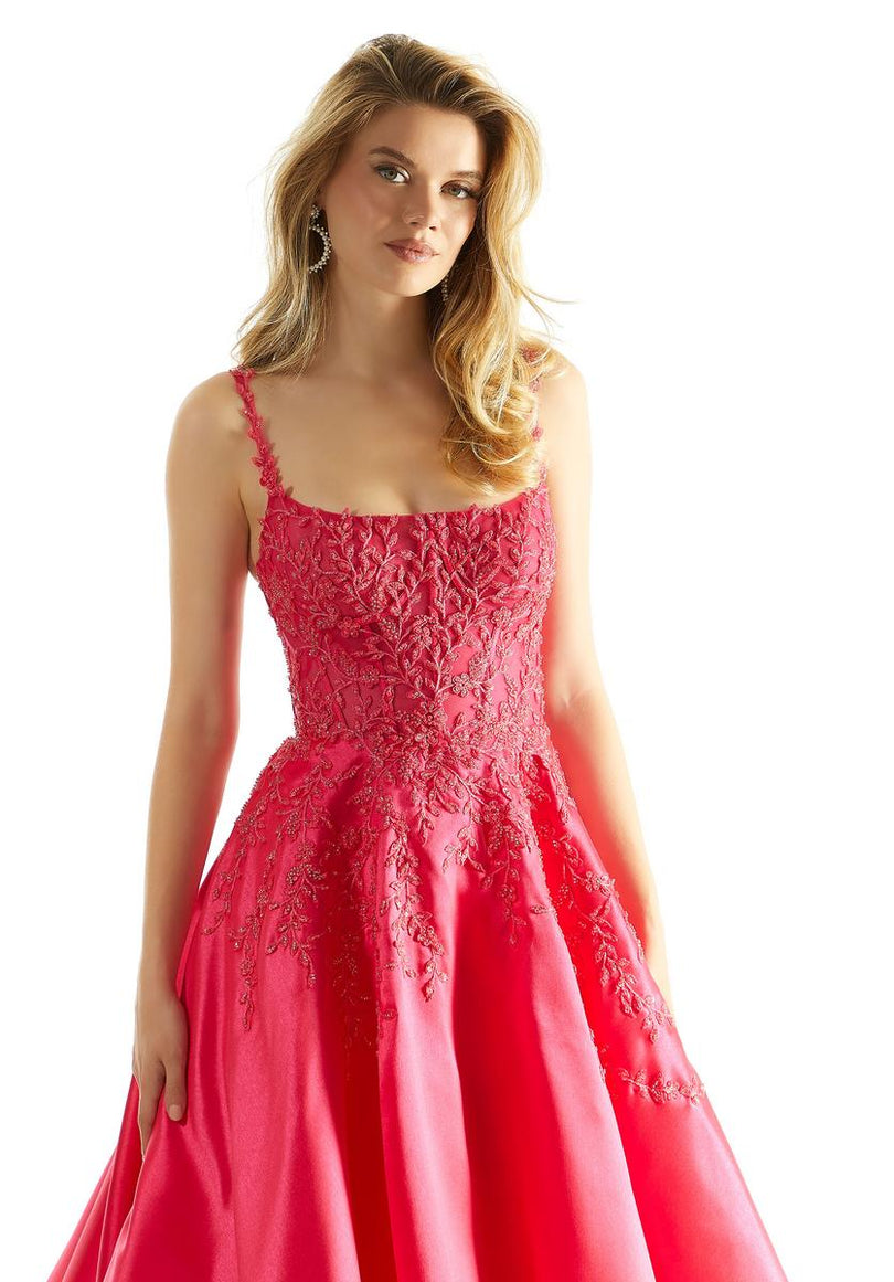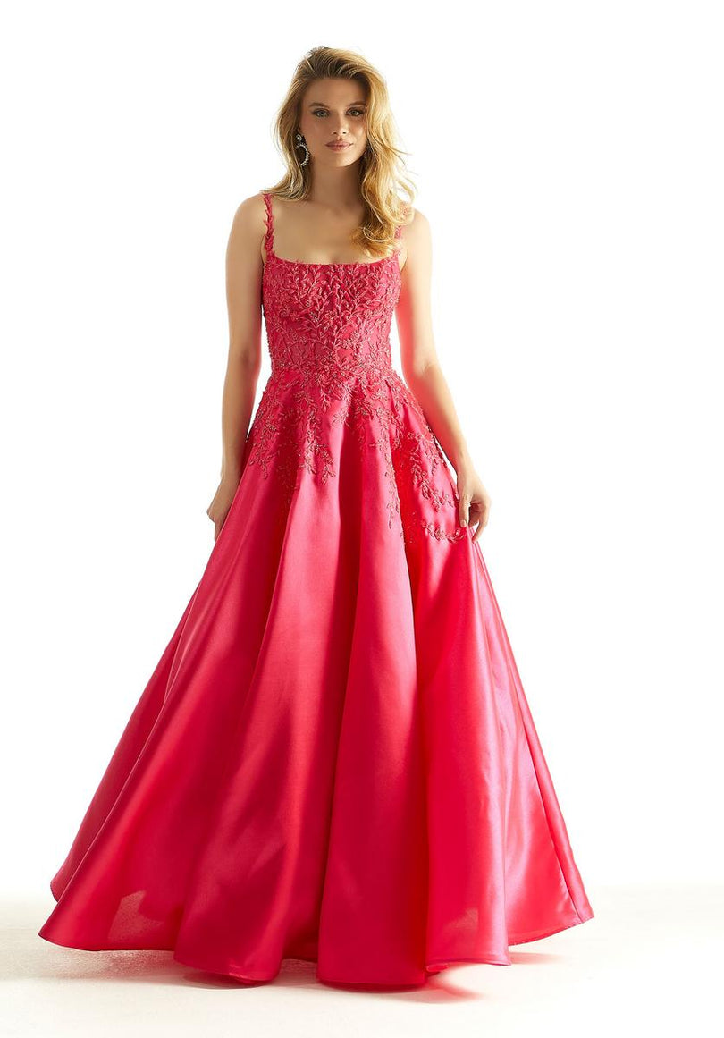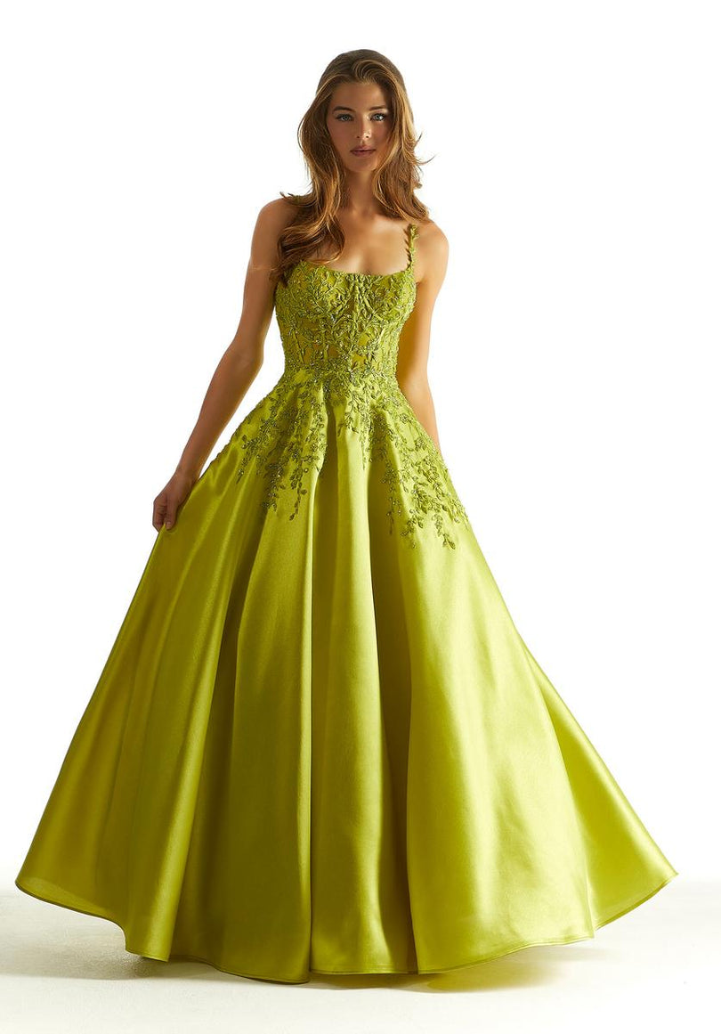 leave a jaw-dropping impression in this unique color Aline dress designed by Morilee from Spring 2024. 49026, showcases a slim fitting bodice with scoop neckline, dainty lace straps that lead to a zipper back closure. The lovely lace detail covers the top and cascades onto the satin silky aline skirt. Feel like the princess of the night in this fabulous gown for any social event.