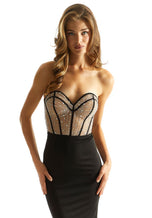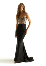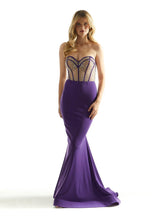 This sophisticated prom dress has all the right touch you're looking for! 49035, will show off your curves from the fitted silhouette. A fully beaded corset bodice with strapless sweetheart neckline and zipper back. The fitted jersey skirt is completed with a sweep train that will sway with every step that you take!