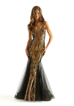 A seductive mermaid gown that will have you shining bright designed by Morilee from Spring 2024. 49037, showcases a deeep v-neckline with v-back and sheer sides. The gown has intricated patterned sequin design on the mermaid silhouette with textured glitter detail. Have all eyes on you when you step foot to your special occasion.