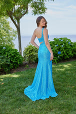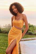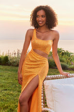 Turn looks in this dazzling gown, designed to shimmer with every step. The glittering sequins create a breathtaking, all-over sparkle, making you the center of attention at any event. The elegant one-shoulder design adds a modern touch, while the scoop neckline frames your face with sophistication. A daring side cut-out adds a bold, contemporary twist, while the thigh-high slit offers a hint of allure and movement. Perfect for a glamorous evening or special occasion, this gown seamlessly blends chic style with a touch of edgy glamour.
