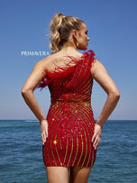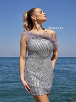 Make a chic and glamorous entrance with the Primavera Couture 4002, a captivating short homecoming dress designed to turn heads. This dress features an alluring one-shoulder design that exudes sophistication and style. The standout feather detail adds a touch of elegance and creates a unique focal point. The Primavera Couture 4002 is perfect for those who want to make a fashion statement at their homecoming event. Its combination of the one-shoulder silhouette and feather embellishment creates a striking and memorable look. Get ready to shine and feel confident in this stunning Primavera Couture dress.