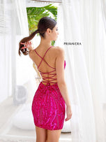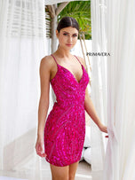 Steal the spotlight and turn heads at Homecoming or your next cocktail event with the Primavera V-Neck Lace-up Back Homecoming Dress (style 4250). This dazzling creation is a perfect blend of elegance and sparkle, guaranteed to make you feel like the star of the show.The plunging V-neckline showcases a touch of sophistication, while the intricate lace-up back adds a touch of drama and allows for a perfect fit. But the true star of this dress is the cascade of elegant sequins that adorns the entire dress. These shimmering embellishments catch the light with every move, making you a radiant vision as you dance the night away at Homecoming or mingle at a cocktail party.This Primavera masterpiece is more than just a dress; it's a confidence booster. With its classic silhouette, stunning details, and touch of sparkle, the Primavera V-Neck Lace-up Back Homecoming Dress (style 4250) is the perfect choice to dazzle and shine on any special occasion.