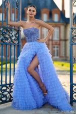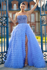 Ready to feel like royalty at Prom? Step into enchantment with the Sherri Hill 56883 Strapless Ballgown. This breathtaking masterpiece features a beautifully beaded bodice that glistens with elegance, while layers of tulle ruffles cascade down to create a dreamy, voluminous skirt. The daring slit adds a modern twist to this fairytale design, perfect for the princess who wants to make a lasting impression. With every detail crafted to perfection, this gown is truly the ultimate expression of regal allure and captivating charm.