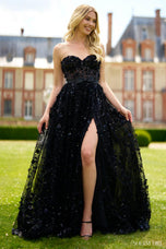 Sherri Hill Spring 2025 Style 57013 is a perfect blend of gorgeous details and sophisticated styling thats sure to impress! This strapless sequin lace ball gown features a flattering corset top, a daring skirt slit, and a playful bow embellishment that adds a fun, flirty touch. Whether you're looking to stand out at a springtime event or need a statement dress for a black-tie formal occasion, this gown comes in a full range of colors to suit any vibe. We're totally obsessed with this chic yet fun look from the celebrity designerit's perfect for making an unforgettable entrance!