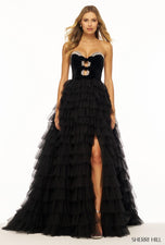 Sherri Hill Velvet Ruffle Ball Gown Dress 56034
