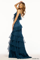 Sherri Hill Stretch Satin Chiffon Ruffle Prom Dress 56087