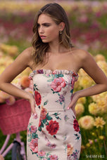 Sherri Hill Strapless Floral Print Taffeta Dress 56283