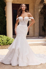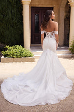 Created for the Spring 2025 Bridal gown season, this is Elvie from Sophia Tolli. She's the sexy and sparkly dress you've always dreamt of! Featuring a fit and flare silhouette that is both dramatic and sophisticated. The sweetheart bodice features a deep V-neck and is decorated with floral sequined lace appliques that will shimmer under the chandelier or glisten in the starlight! Finished with a stunning train with lace appliques and a demurely sexy illusion bodice on the back. Detachable off the shoulder straps give her an ultra-romantic vibe.