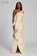 Teri Jon One Shoulder Jacquard Evening Gown 217028