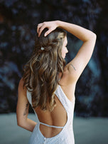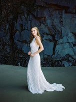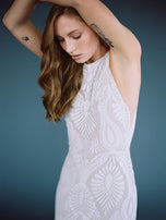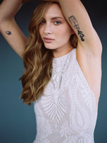 Marlowe, style F116 is a boho-chic sheath from the Fall 2018 Wilderly Bridal collection. Not only stunning but affordable as well, this gown is the perfect blend of low-key elegance and clean modern lines. A staff favorite, look no farther than this flattering halter neckline for your destination wedding or gorgeous outdoor affair. Please call our Dallas, Texas location to check in-store availability and current ship dates.