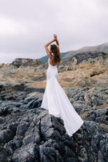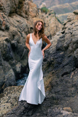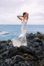 Created for the Spring 2024 Wilderly Bridal Gown collection, the Markee gown is a masterclass in understated beauty, perfect for your destination wedding, elegant reception, or beach celebration. Its soft, fluid satin drapes over the body, exuding a sense of effortless grace. The demurely sexy V-neck adds allure, while the low open back creates a captivating focal point. Bow detailing adds a touch of charm and completes the ensemble. Designed with your sophisticated aisle style in mind!