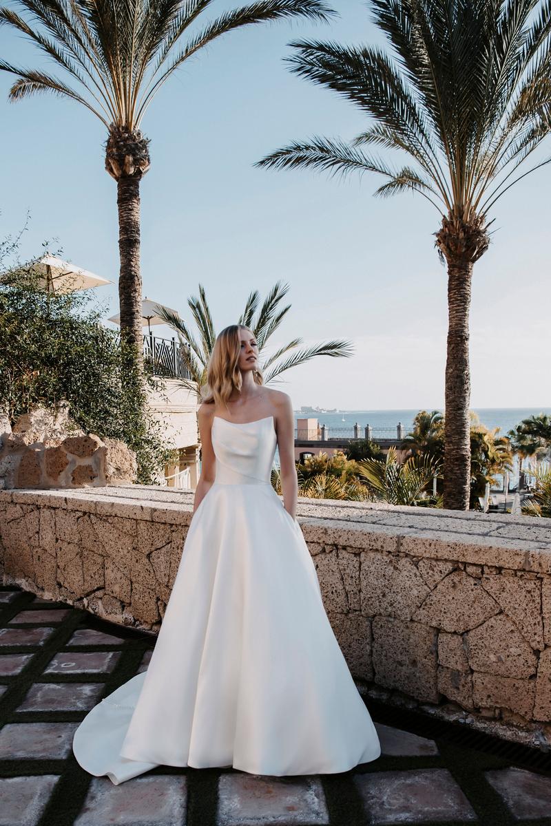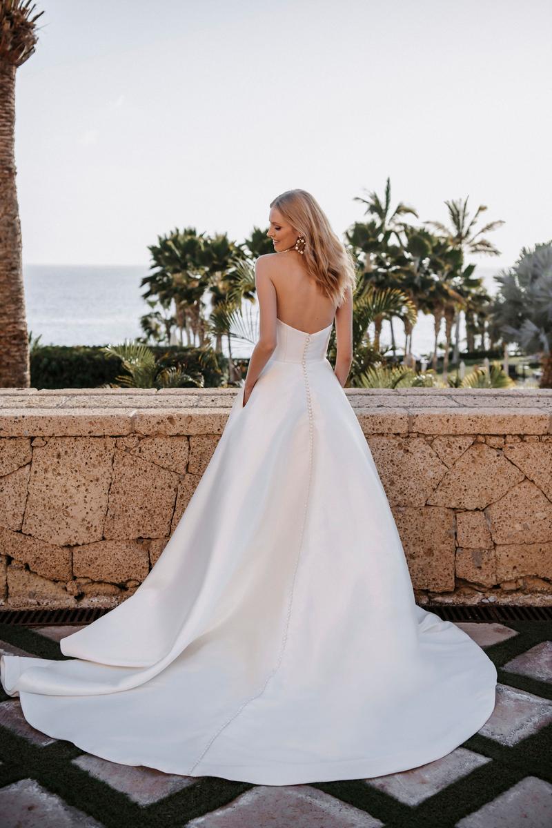 There is perhaps nothing more elegant than a glowing bride in a strapless ballgown wedding dress! Case and point: Carmena from the Fall 2022 Abella Collection for Allure Bridals is the absolute perfect pick for your formal wedding or romantic church ceremony! Designed with Mikado fabrication (so flattering on any body type!) and just the right amount of princess-inspo, we're of course mostly loving her pockets and attention to detail! An excellent pick for modern and classic brides alike. Please call our Dallas, Texas location to check in-store availability, pricing and current ship dates.