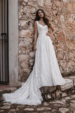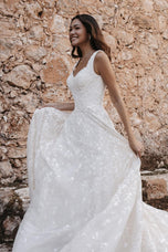 Flirty and fun as her name sake, this is the Austin gowns from the fellas 2023 bridal gown collection. Featuring an A-line silhouette and modified sweetheart neckline, we're loving her comfortable straps and figure flattering silhouette. Design with your outdoor deception in mind, were absolutely loving her for a destination affair. Please call or Dallas, Texas location to check in store availability, pricing, and current ship dates.