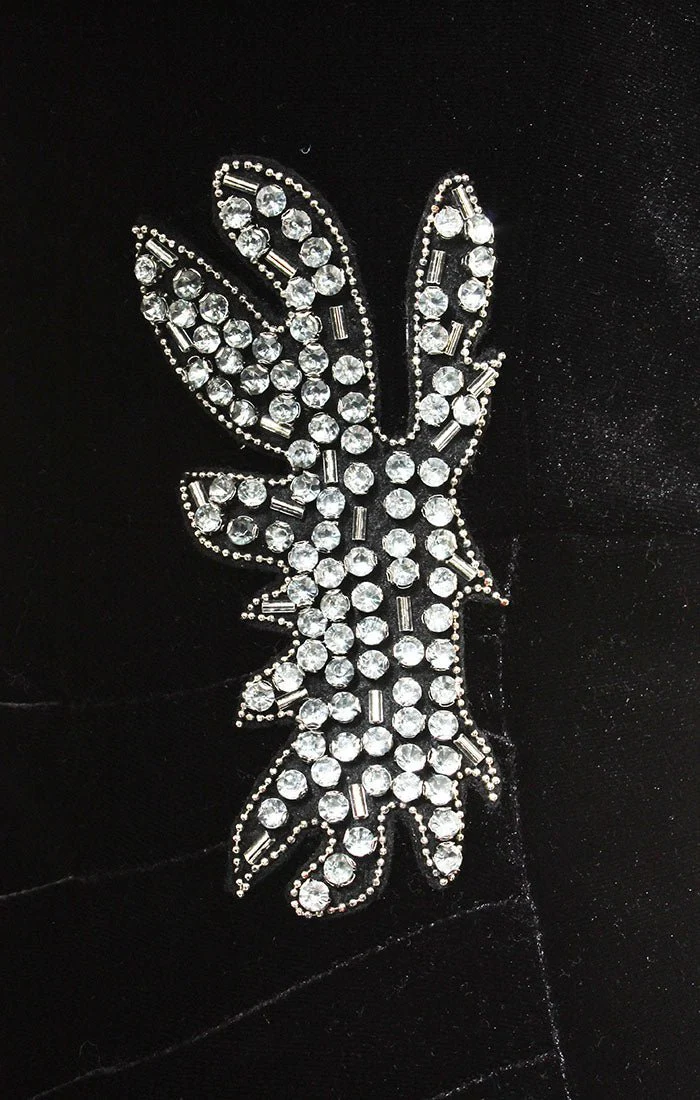 This long dress is crafted from luxurious stretch velvet fabric. It features a halter neckline with an illusion inset. It also features a a beaded hip detail for a touch of glamour. The front slit allows for maximum movement. This dress is a final sale. No Returns or Exchanges.