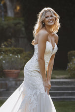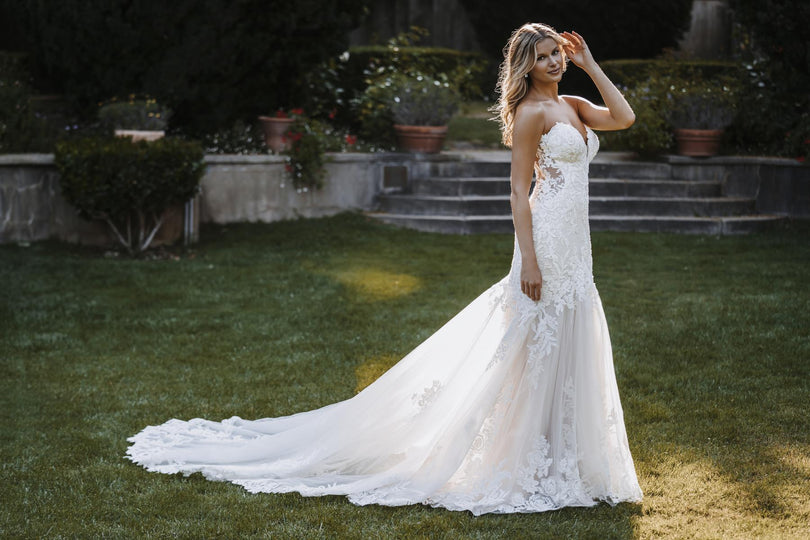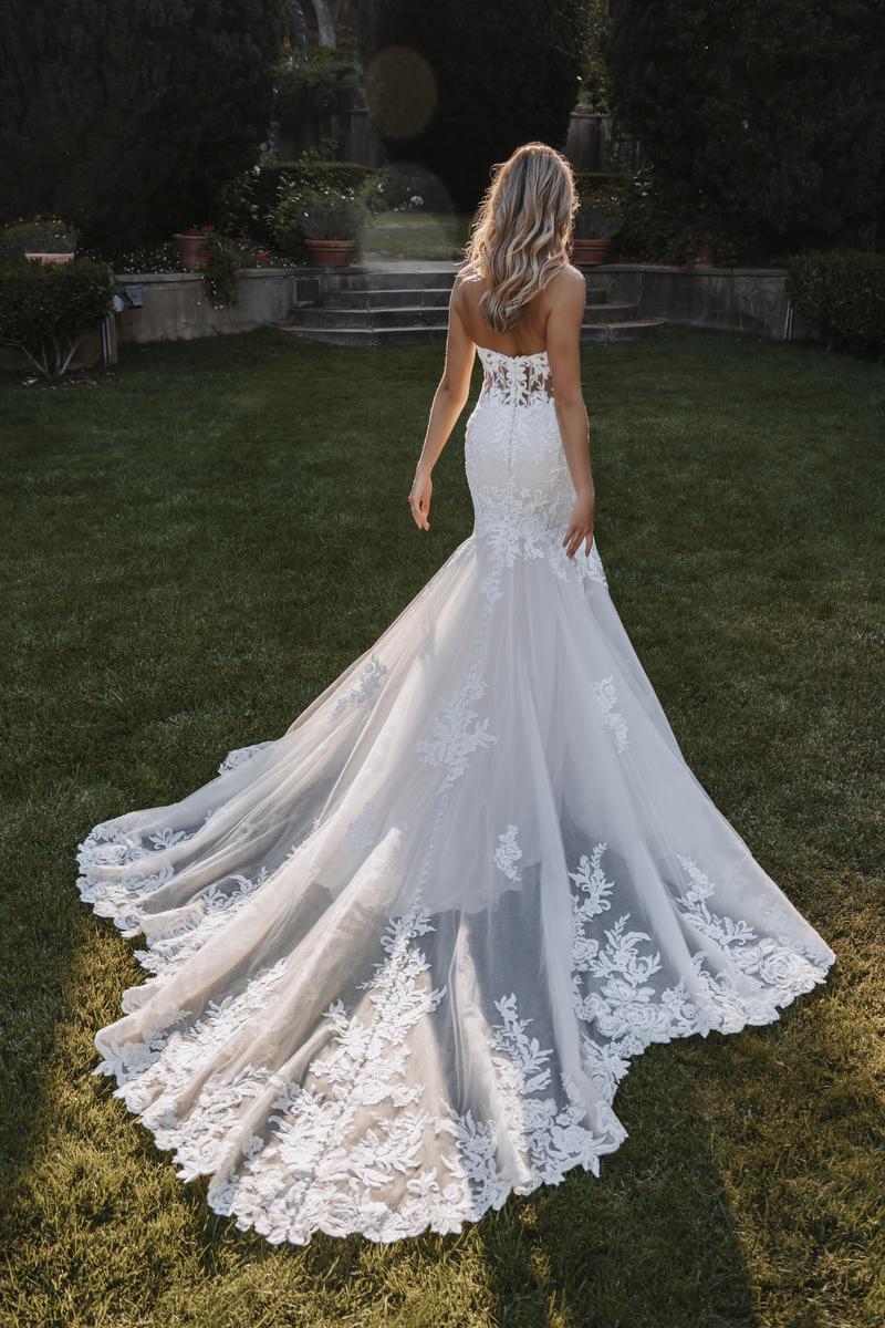 We're proud to present the latest addition to Allure's stunning Spring 2022 Couture Bridal Gown collection. Style C636 features lace, crystal beading and an illusion train just begging to float down the aisle at the most sophisticated of ceremonies, whether your outdoors under the stars or staring into your SO's eyes at an elegant, candlelit ceremony. Gorgeous and classic, this flattering, strapless gown features a sweetheart neckline bodice and an illusion lace back that will simply keep all eyes on you. Also available 4" shorter for our petite brides! While we're loving the sexy, sheer bodice, this style is also offered with a lined bodice for a more covered, modest look (C636L). Please call our Dallas, Texas location to check in-store availability, pricing and current ship dates.