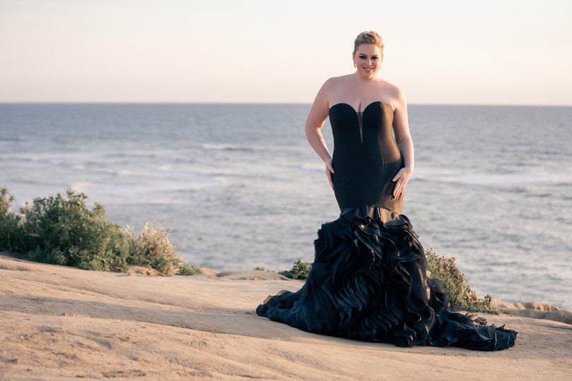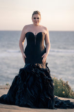 We're literally obsessed with this classic silhouette with oh-so-modern details from Allure Couture's Fall 2023 Bridal Gown collection! Meringue-like razor cut organza creates the illusion of ocean waves along the bodice of this strapless mikado mermaid gown, making it perfect for your beach wedding or Disney-inspired wedding day! A plunging strapless sweetheart neckline completes the look. Please call our Dallas, Texas location to check in-store availability, pricing and current ship dates.