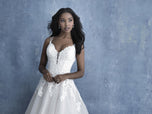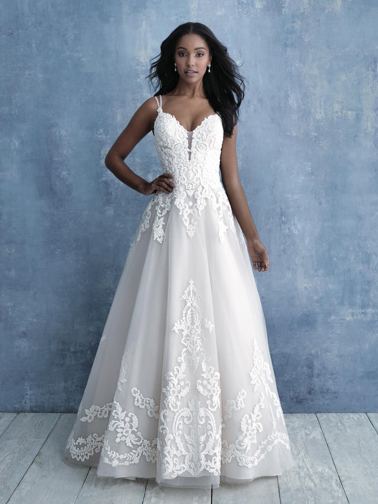 A beautiful and romantic a-line bridal gown from Allure Bridal's Spring 2020 Wedding Dress collection, this lacy dream dress is style 9732. We're loving the delicate, comfortable straps and plunging sweetheart neckline. Full of fun, flirty design, we're imagining this look at your destination wedding or formal church affair. Soft and light, you'll love the low, open scoop back and boho-inspired lace appliques throughout. Please call our Dallas, Texas location to check in-store availability, pricing and current ship dates.