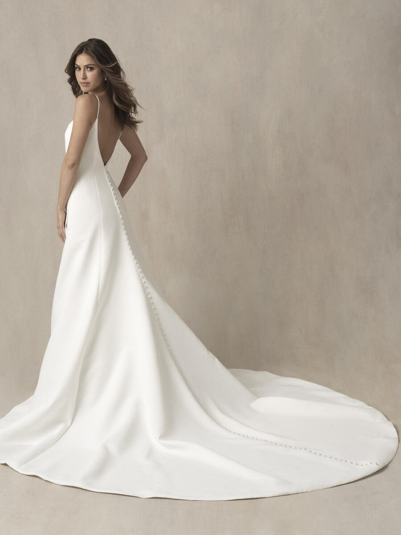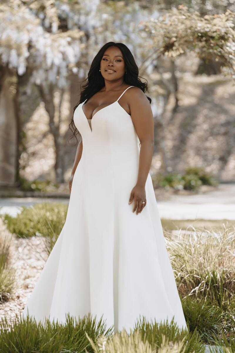 Striking in its chic simplicity, this strappy A-line gown is style 9862 from Allure Bridal's Fall 2021 Wedding Dress collection. Featuring illusion cutouts at the sides as well as the sweetheart neckline, this flattering style is also available in woman's sizing as style 9862W. Perfect for a modern ceremony or intimate reception, you'll feel absolutely perfect in this simple bridal gown! Please call our Dallas, Texas location to check in-store availability, pricing and current ship dates.