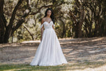 Ready to flounce down the aisle in a floral flirty bridal gown fit for a woodsy princess? You'll love the vibes of style 9902 from Allure Bridal's Spring 2022 Bridal Gown collection. Ethereal lace appliqus are strewn across the bodice, train and hemline of this off-shoulder a-line wedding gown. We're picturing this look for your elegant outdoor ceremony or formal church affair--no fancy frills required! Just classy elegance and romantic feelings all around! Not a fan of the illusion bodice? Also available lined as style 9902L for a more modest wedding dress feel. Please call our Dallas, Texas location to check in-store availability, pricing and current ship dates.