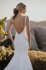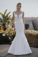 The slightest hint of an illusion back adds a layer of mystique and elegance to this sleeveless, fit and flare Mikado gown, style A1159, from Allure Bridals' Fall 2023 Bridal Gown collection. Fit for a classic bride with a touch of whimsy, she'll stand out as the perfect centerpiece to your modern-princess themed wedding or romantic outdoor ceremony in the woods! Please call our Dallas, Texas location to check in-store availability, pricing and current ship dates.