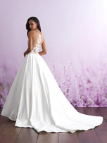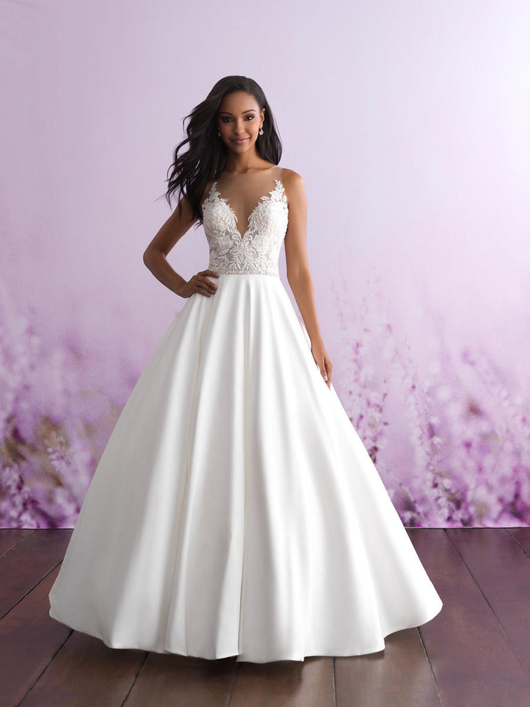 Featuring a dramatic back, this ballgown is style 3112 from the Allure Romance 2018 bridal collection. A dreamy illusion bodice is paired with a full skirt in this look, perfect for your formal ceremony or destination wedding. Please call our Dallas, Texas location to check in-store availability and/or pricing.