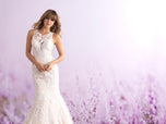 This sleeveless fit and flare is style 3115 from the Allure Romance 2018 bridal collection. We love the floral pattern blooming across the illusion neckline, perfect for your outdoor wedding or romantic garden wedding. This look would also be ideal for your reception dress or destination wedding. Please call our Dallas, Texas location to check in-store availability and/or pricing.