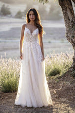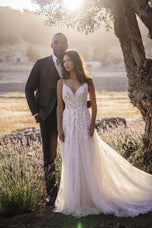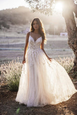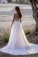 The Romance Collection from Allure Bridals for Spring 2023 presents style R3611, a sweet and simple a-line lace gown perfect for a flirty and fun outdoor wedding or whimsical ceremony. Featuring a plunging neckline and low open illusion back, this romantic gown will make you look and feel beautiful on your special day. Please call our Dallas, Texas location to check in store availability, pricing, and current ship dates