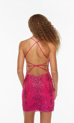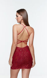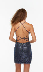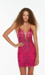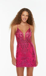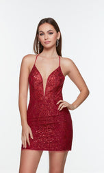Dont miss out on this hot and fierce homecoming dress designed by Alyce Paris, 4513, from Fall 2022 Collection. This short, fitted gown is designed with ravishing glitter tulle detail. The sexy plunging v-neckline has modesty insert, thin straps that create a crisscross on open back. Perfect for any social event you may have. Need additional details on this beauty? Give us a call at Terry Costa and speak to one of your professional fashion consultants!