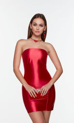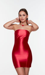 Wow the crowd in this gorgeous short, fitted cocktail dress by Alyce Paris.4529, is from Fall 2022 Collection that showcases a straight strapless neckline with a lovely lace-up back for a snug fitting. The stretch satin fabric will define your figure perfectly. Make this your go-to for any social gathering and much more!