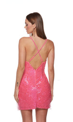 Stay pretty in pink with this radiant cocktail created by Alyce Paris, 4627. The beading on this dress will shine from all angles. A plunged neckline with thin beaded straps that crisscross the open back. The fitted skirt is completed with fun fringe detail that will sway with every step that you take. Don't miss out on this gem for any special event.