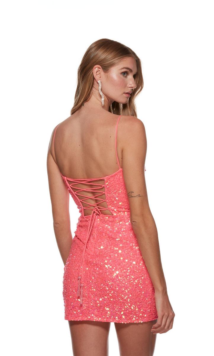 4629, by Alyce Paris is a showstopper! The amount of sequins that adorn this cocktail is so beautiful, from the v-neck to the side petal slit along the skirt. A lace-up back with zipper closure for easier adjusting. Showcase this beauty on HoCo night, Girls night and much more.