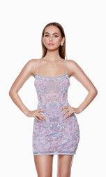 Floral patterns are trending!! 4665, is an Alyce Paris masterpiece that showcases a slim fitting silhouette with a straight across neckline, thin straps, and lace-up back for a snug fit. The sheer bodice has exposed boning adorned with gorgeous floral embellishments that cascade to the skirt. This cocktail dress is suitable for Gala, Prom, HoCo, and much more!