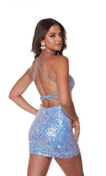 Be ready to turn heads in this eye-catching cocktail dress by Alyce Paris, 4770. The fitted dress features a fully beaded silhouette covered in sequins, v cut neckline with thin straps for support and hook straps on the open back. Perfect for HoCo, Winter Formal, and much more!