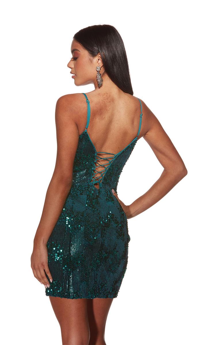 Steal the spotlight in this Alyce Paris Homecoming Dress 4932, a dazzling combination of sophistication and playful flair. This alluring homecoming dress, perfect for any cocktail event too, features a luxurious velvet base adorned with a shimmering sequin pattern, ensuring you catch the light and turn heads with every move. The plunging neckline adds a touch of drama, while the fitted silhouette flatters your curves and hugs your figure for a confident and glamorous look. But the real showstopper is the stunning lace-up back. The intricate lacing detail adds a touch of whimsical charm and allows for a perfect, adjustable fit. This versatile dress can be called a homecoming dress or a cocktail dress, making it perfect for any special occasion. Twirl with confidence on the dance floor at your homecoming dance or hold court at a cocktail party, knowing every detail of this Alyce Paris creation is designed to make you shine!