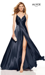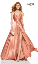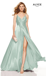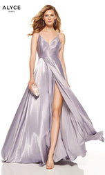Turn heads this Prom season with Alyce Paris 60624. This Prom 2020 gown is a washed charmeuse fabric, so it flows and shines with you with every move! You'll be sure to get all the likes on IG with the plunging V-Neck and thigh slit. Alyce Paris 60624 is available in lilac, baby blue, navy, olive green, emerald, dark purple, gray blue, and rose. Wear this gown to any special occasion, formal event,and of course Prom 2020. Find your dream dress here at Terry Costa!