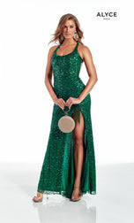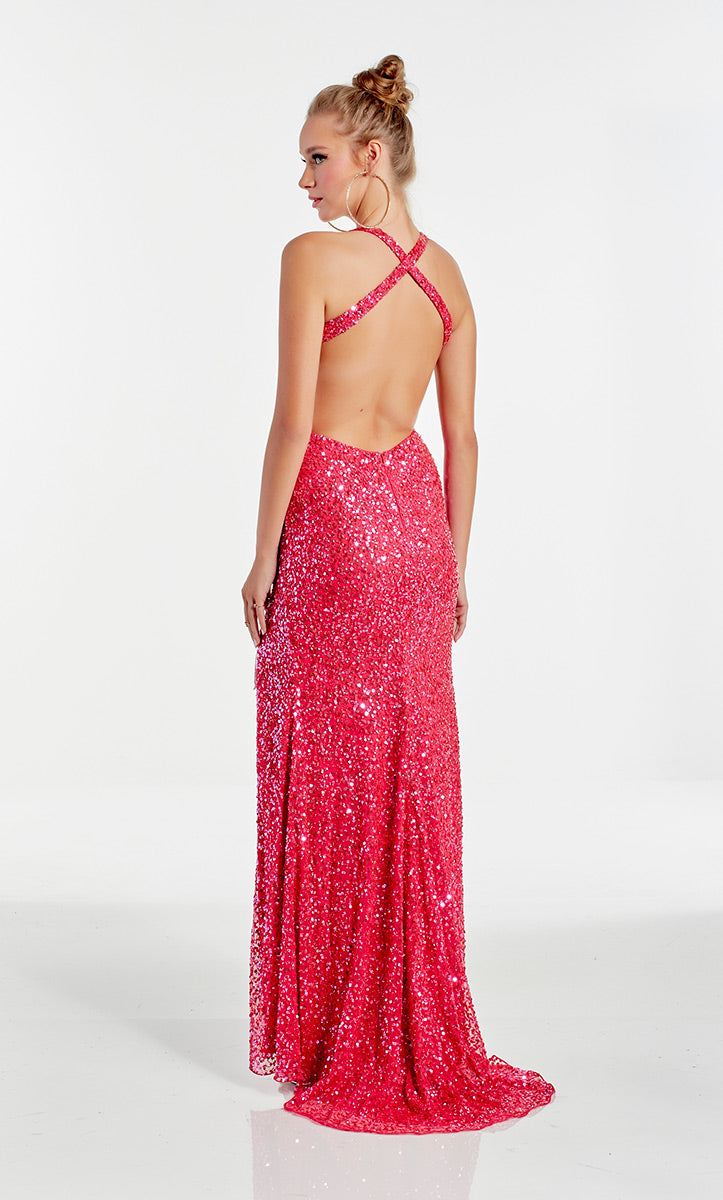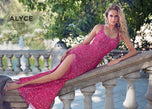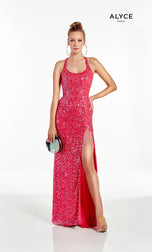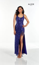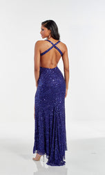 Sparkle, Sparkle, Sparkle in this amazing style 60985 by Alyce Paris is an unique look. This fitted long dress is fully sequins with tone on tone sequins and a scoop neckline. Thick beaded straps criss cross over each other on your back. The fitted skirt has a slit that features beaded fringe detail at the peak of the slit! Perfect for Senior Prom, Fraternity Formal or Gala!
