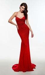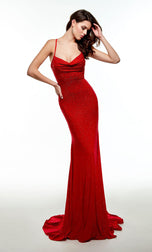 Super sexy and sassy is this gorgeous long fitted gown designed by Alyce Paris.61045, showcases a scoop neckline, thin straps and open lace-up back.The gown is made of jersey fabric and will hug your figure just right! The gown is finished off with a long sweep train. Make this your go-to gown for a night out.