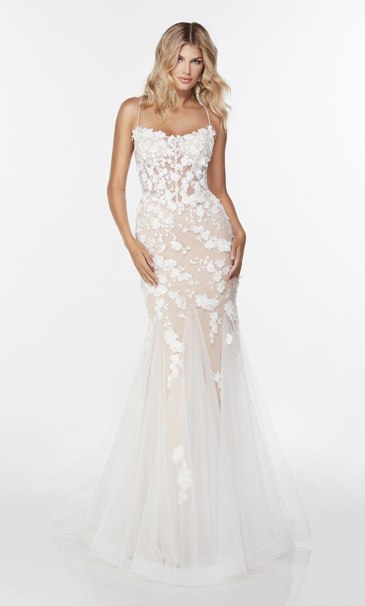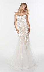 Find this glitz and glam evening gown at Terry Costa! This Alyce Paris, 61074, features a v neckline , thin straps and keyhole opening back with lace-up. The laced gown will hug onto you perfectly! Make this your go to gown for Hoco or Prom1