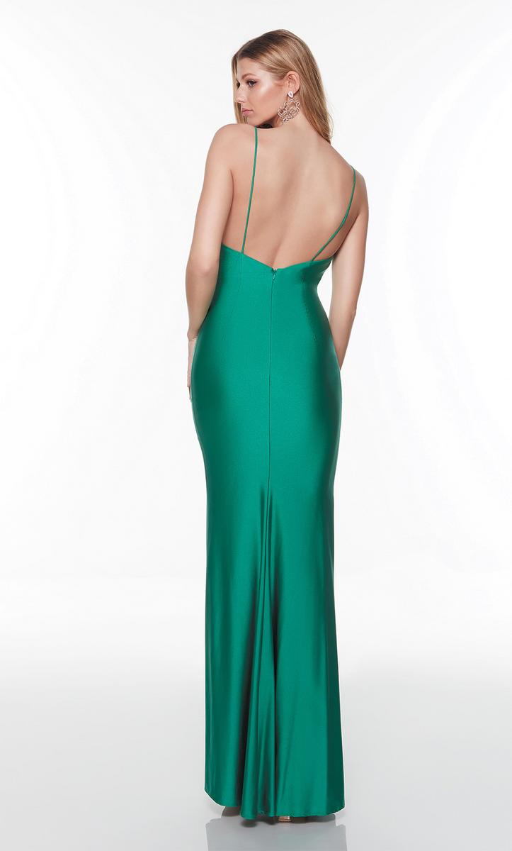 This Alyce Paris gown, 61287, is designed by Alyce Paris from Spring 2023 Collection and is made in power jersey fabric that will hug on you just right! The gown showcases a v neckline with thin straps, zipper closure back and slim fitting bodice with light ruching. The gown is completed with a sexy leg slit and sweep train that will sway with every step that you take! The color is perfect for Senior Prom to Holiday events.