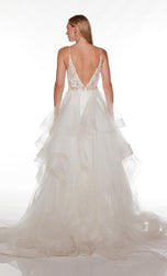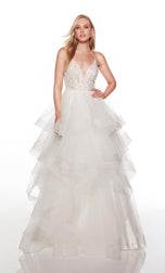 Make a grand entrance in this dramatic Aline gown designed by Alyce Paris Prom from spring 2023 Collection. 61290, has slim fitting tulle top adorned with delicate lace detail, plunged v neckline with mesh detail and a low v back. A beaded belt that will accentuate your waistline and stunning Aline tulle skirt with fun ruffle layer detail with horsehair hem detail. This is perfect for Senior Prom, Ball or Sweet 16.