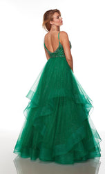 Wow the crowd with this vibrant gown designed by Alyce Paris from Spring 2023 Collection. 61326, has a plunging v neckline with thin straps that compliments the side cutouts. Decorated with beaded lace detail and low v back. A layered tulle skirt with ruffle detail and horsehair hem for volume. This is perfect for any Holiday event to Senior Prom night.