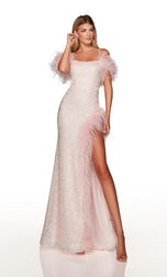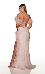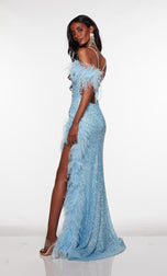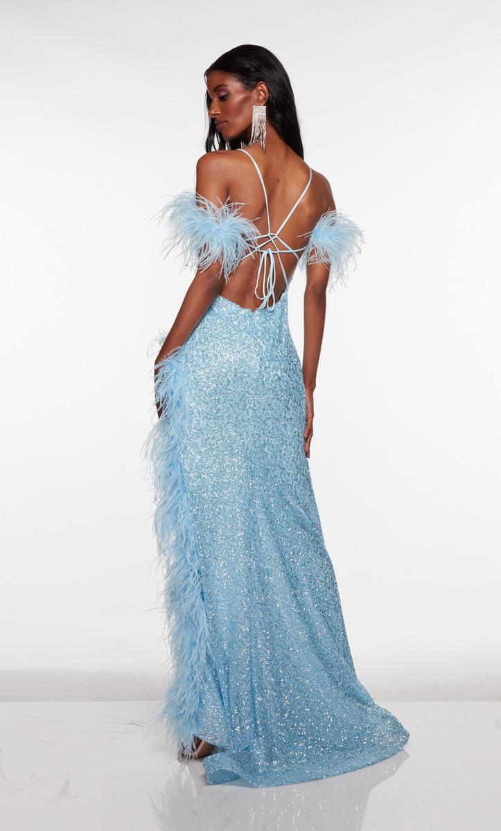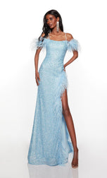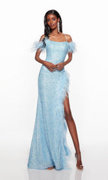 Slay the night at any party with this stunning Alyce Paris Prom evening gown from Spring 2023 Collection. 61371, is created with sparkling sequins that will shine from all angles! The straight across neckline for modesty, thin straps that form into an open strappy back and cold shoulder straps adorned with fun feather detail! The fitted silhouette will give you the hourglass shape and is completed with a sexy leg sit with feather trim. Dont miss out on this gem for any special event.