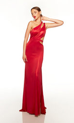 To have the perfect night you need the perfect dress and this Alyce Paris fitted long prom dress is exactly what you need to complete your perfect night! Created with smooth and shiny metallic jersey fabric, this dress will not only complement but enhance your gorgeous shape. It also has a classic bodice with a double strap one shoulder. The detail doesn't stop there! This dress also features sexy cut-outs on the waist that will have your waist looking snatched. And if you thought it couldn't get any better, it does! The hot slit on this dress will be sure to show your fabulous legs. What're you waiting for? Your perfect night awaits you!